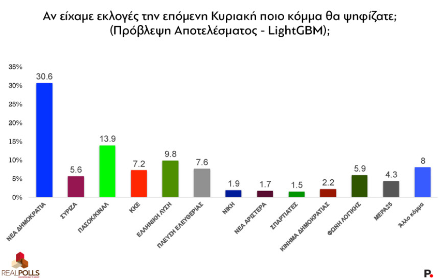 RealPolls: Στο 30,6% η ΝΔ – Στο 5,6% ο ΣΥΡΙΖΑ – πτώση 3 μονάδων για την Πλεύση