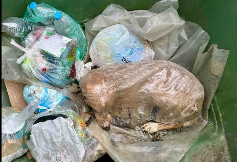 Την πέταξαν ζωντανή. Αποστεωμένη. Κλεισμένη μέσα σε τσουβάλι από καλαμπόκι και ριγμένη σε κάδο σκουπιδιών