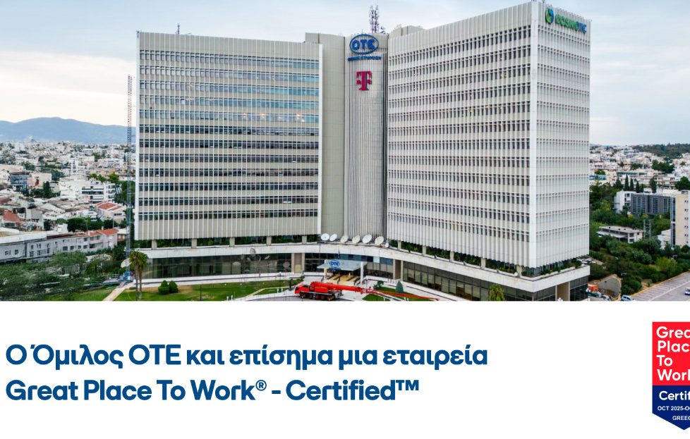 Ο Όμιλος ΟΤΕ έλαβε την πιστοποίηση Great Place To Work®, μια σημαντική τιμητική διάκριση που αναγνωρίζει την κουλτούρα του εργασιακού περιβάλλοντος.