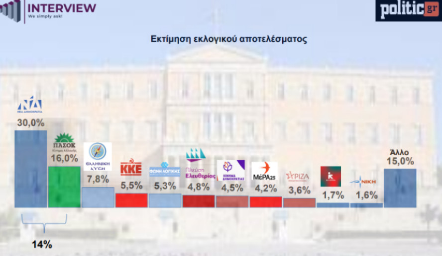 Interview: Στο 30% η ΝΔ – στο 3,6% ο ΣΥΡΙΖΑ – στο 4,8% η Πλεύση!