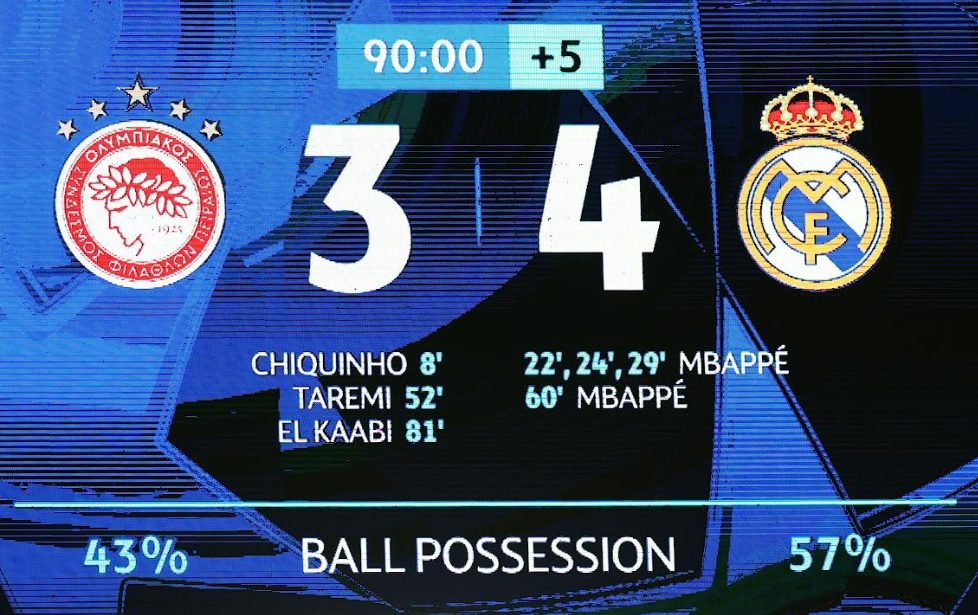 Επειδή όμως η Ρεάλ είναι η… Ρεάλ με τις όποιες απουσίες, έκανε την ανατροπή με συνοπτικές διαδικασίες. Πάρα πολύ εύκολα ο Εμπαπέ βρήκε τους χώρους και σκόραρε τρεις φορές στο πρώτο ημίχρονο. Ο Ολυμπιακός όμως δεν τα παράτησε και με επιμονή ότι τίποτα δεν έχει τελειώσει ξανά μπήκε στο παιχνίδι. Και τότε όμως η Ρεάλ λίγο ανέβασε ένταση και έκανε το 2-4. Ακόμη και τότε ουδείς εγκατέλειψε τη μάχη. Τα αμυντικά προβλήματα στην ομάδα του Αλόνσο ήταν εμφανή και ο Ελ Καμπί βρήκε το γκολ που τόσο έψαχνε. Στα τελευταία λεπτά που έμειναν, οι δύο τελικές του Ολυμπιακού σήκωσαν στο πόδι το γήπεδο και έδωσαν ελπίδα στον κόσμο. Μπορεί το γκολ να μην ήρθε, αλλά το γεγονός ότι ένα μεγάλο αποτέλεσμα ήταν τόσο κοντά είναι απολύτως ενθαρρυντικό.