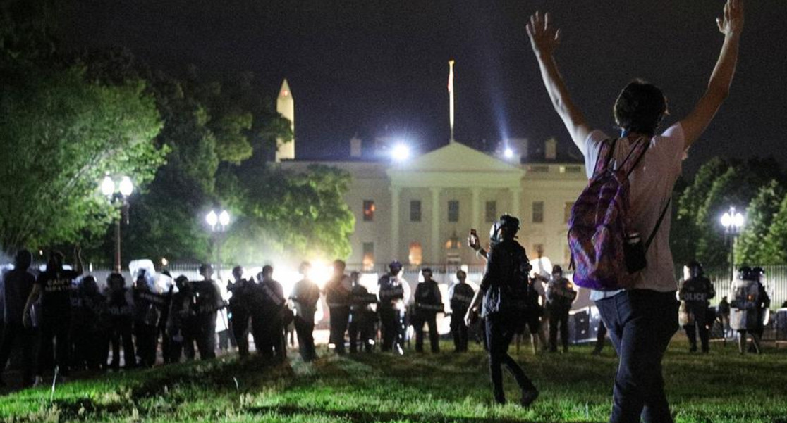 Στην Ουάσινγκτον η αστυνομία έκανε εκτεταμένη χρήση δακρυγόνων το βράδυ της Κυριακής (τοπική ώρα• το πρωί της Δευτέρας ώρα Ελλάδας) για να διαλύσει τους συμμετέχοντες σε διαδήλωση εναντίον της αστυνομικής βίας και του ρατσισμού μπροστά στον Λευκό Οίκο, καθώς ξέσπασαν επεισόδια σε διάφορες περιοχές της πρωτεύουσας.