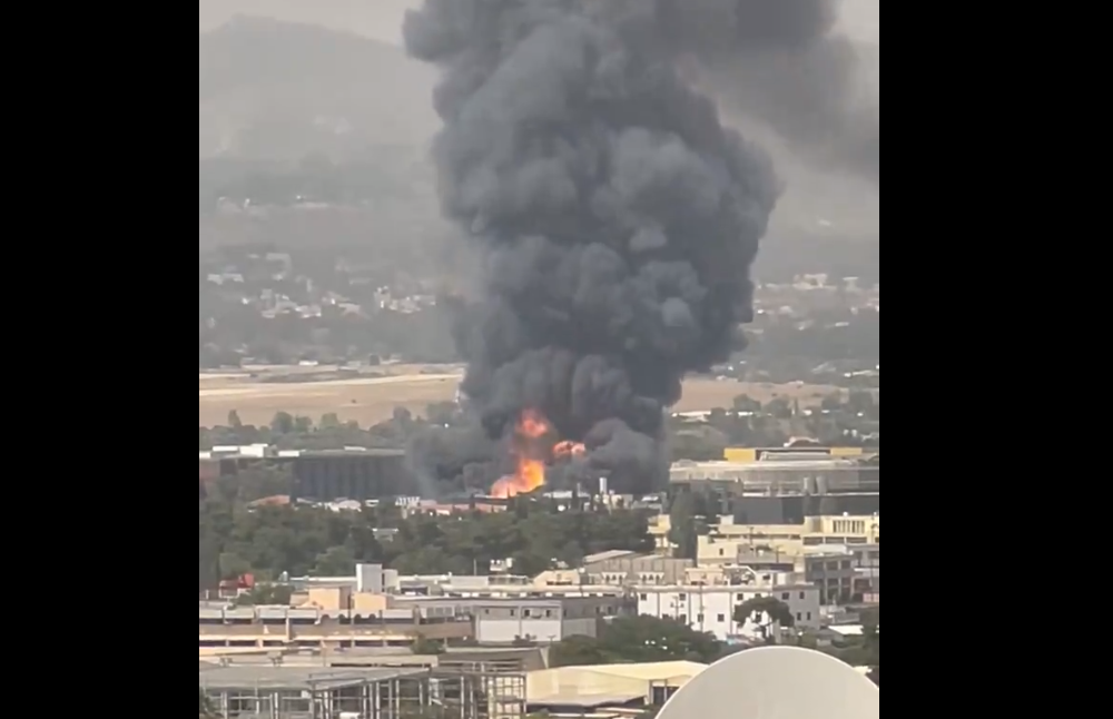 Ασφαλισμένο εμφανίζεται το εργοστάσιο Παλαμίδης στο οποίο ξέσπασε μεγάλη φωτιά νωρίτερα μέσα στη μέρα.