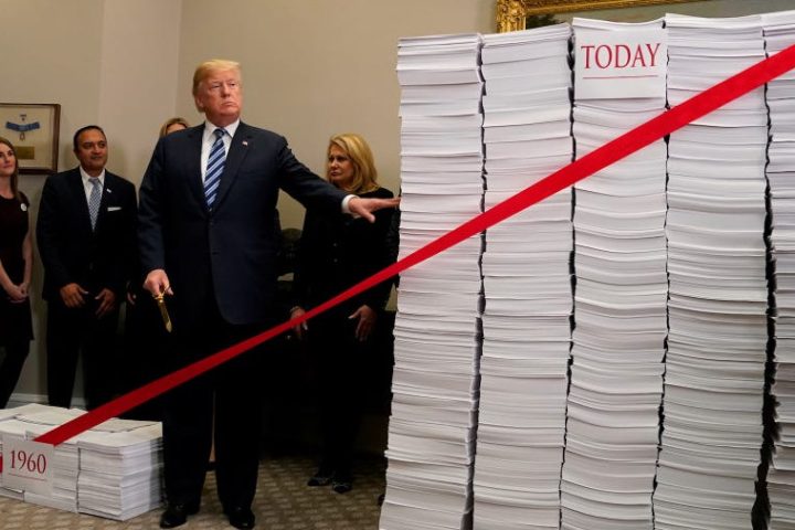Μία από τις πρώτες εντυπωσιακές φωτογραφίες που είχε δημοσιοποιήσει ο Donald Trump ήταν αυτή που τον απεικόνιζε στην προσπάθεια του να μειώσει τον όγκο της γραφειοκρατίας στο κογκρέσο από πολλές στοίβες εγγράφων