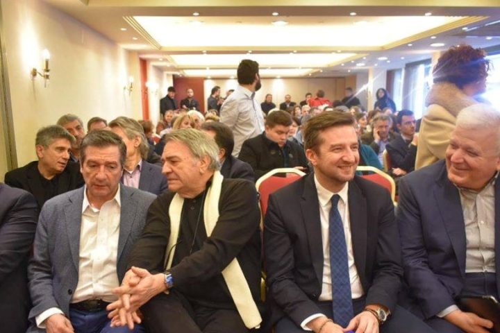 Ομιλητές στην εκδήλωση που πραγματοποιήθηκε στο «ταπεινό» Τιτάνια και όχι στη Μεγάλη Βρετανία ήταν ο γραμματέας του Κινήματος Αλλαγής Μανώλης Χριστοδουλάκης