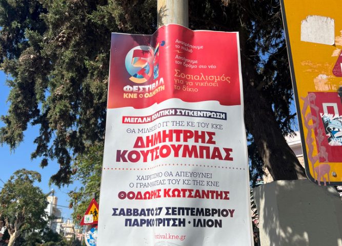 Το ΚΚΕ «γράφει στα παλαιά των υποδημάτων του» τους νόμους με την αφισοκόλληση στο Πάρκο Τρίτση
