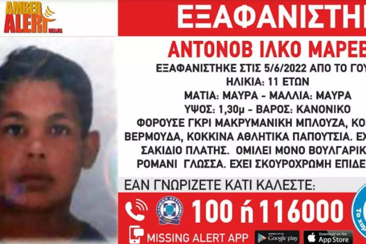 Συναγερμός στην αστυνομία για την εξαφάνιση ενός 11χρονου από το Γουδί. Πρόκειται για τον Αντόνοβ (επ.) Ίλκο Μάρεβ (ον.), 11 ετών, βουλγαρικής καταγωγής, όπως έκανε γνωστό το Χαμόγελο του Παιδιού.