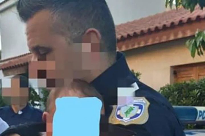 Μία φωτογραφία του αστυνομικού της Άμεσης Δράσης να κρατάει στην αγκαλιά του το μωρό της άτυχης Καρολάιν, η οποία δολοφονήθηκε από ληστές μέσα στο σπίτι της