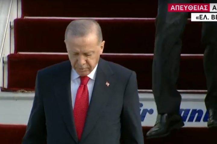 «Παρών» στη συνάντηση του Κυριάκου Μητσοτάκη και του Ταγίπ Ερντογάν και ο Πίνατ που έκανε αισθητή την παρουσία του στην είσοδο του κτηρίου κατά την υποδοχή του Τούρκου προέδρου από τον πρωθυπουργό.