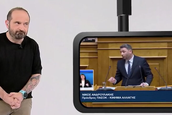 Με μία αιχμηρή και χιουμοριστική παρέμβαση, ο Μάνος Βουλαρίνος σχολίασε την πολιτική αντιπαράθεση, βάζοντας στο στόχαστρο τον Νίκο Ανδρουλάκη και τις αιτιάσεις κατά της κυβέρνησης.