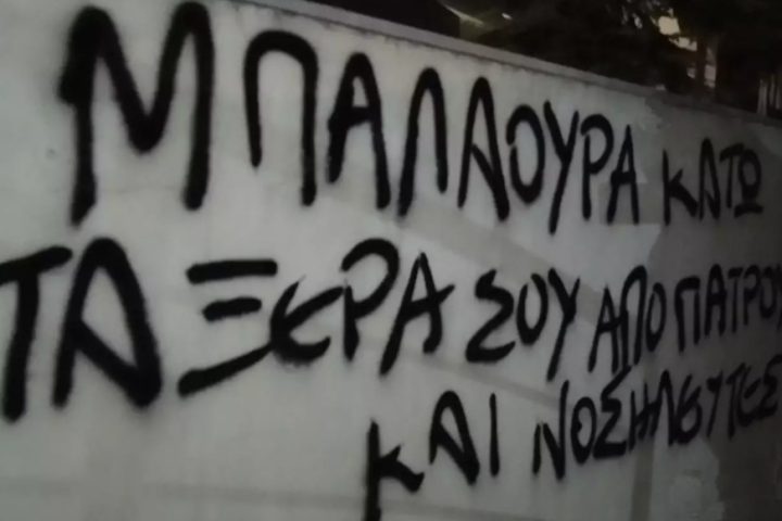 Καταδρομική επίθεση του Ρουβίκωνα στο σπίτι της διοικήτριας του «Άγιος Σάββας» Συνθήματα έξω από το σπίτι της διοικήτριας του νοσοκομείο «Άγιος Σάββας», Όλγας Μπαλαούρα, έγραψαν το βράδυ της Τρίτης (15.12.2020) μέλη του Ρουβίκωνα 16 Δεκεμβρίου 2020 Ελλάδα·Επικαιρότητα