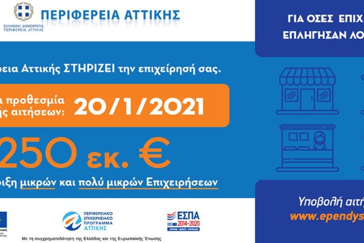 H Περιφέρεια Αττικής σε αυτή την ιδιαίτερη λόγω υγειονομικής κρίσης συγκυρία, στηρίζει έμπρακτα τις Μικρές και Πολύ Μικρές επιχειρήσεις της Περιφέρειας Αττικής