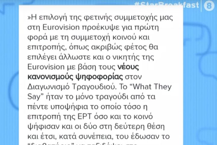 Ο αρχισυντάκτης της «eurovisionfun.com», Γιάννης Αργυρίου, αποκάλυψε πως το κόστος της ελληνικής συμμετοχής στον φετινό διαγωνισμό της Eurovision ανέρχεται στο μισό εκατομμύριο ευρώ.