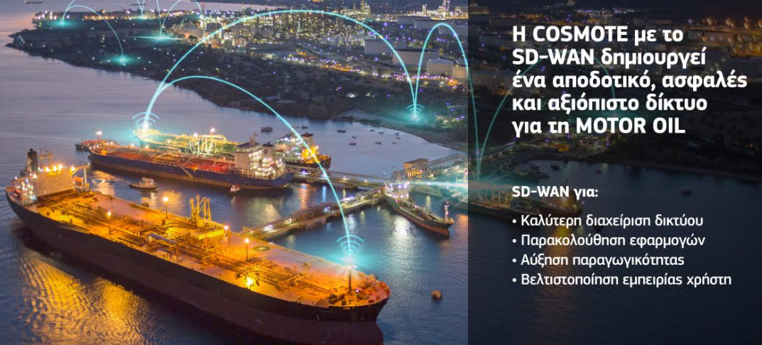 Την πρωτοποριακή, ολοκληρωμένη λύση SD-WAN παρέχει η COSMOTE στην MOTOR OIL αναβαθμίζοντας το τηλεπικοινωνιακό της δίκτυο, ως προς την αποδοτικότητα, την ασφάλεια και την αξιοπιστία του. Το SD-WAN σε συνδυασμό με τις υπηρεσίες συνδεσιμότητας (Connectivity) και τις υψηλών προδιαγραφών ICT λύσεις που διαθέτει η COSMOTE, συμβάλλει καθοριστικά στον ψηφιακό μετασχηματισμό του Ομίλου MOTOR OIL.