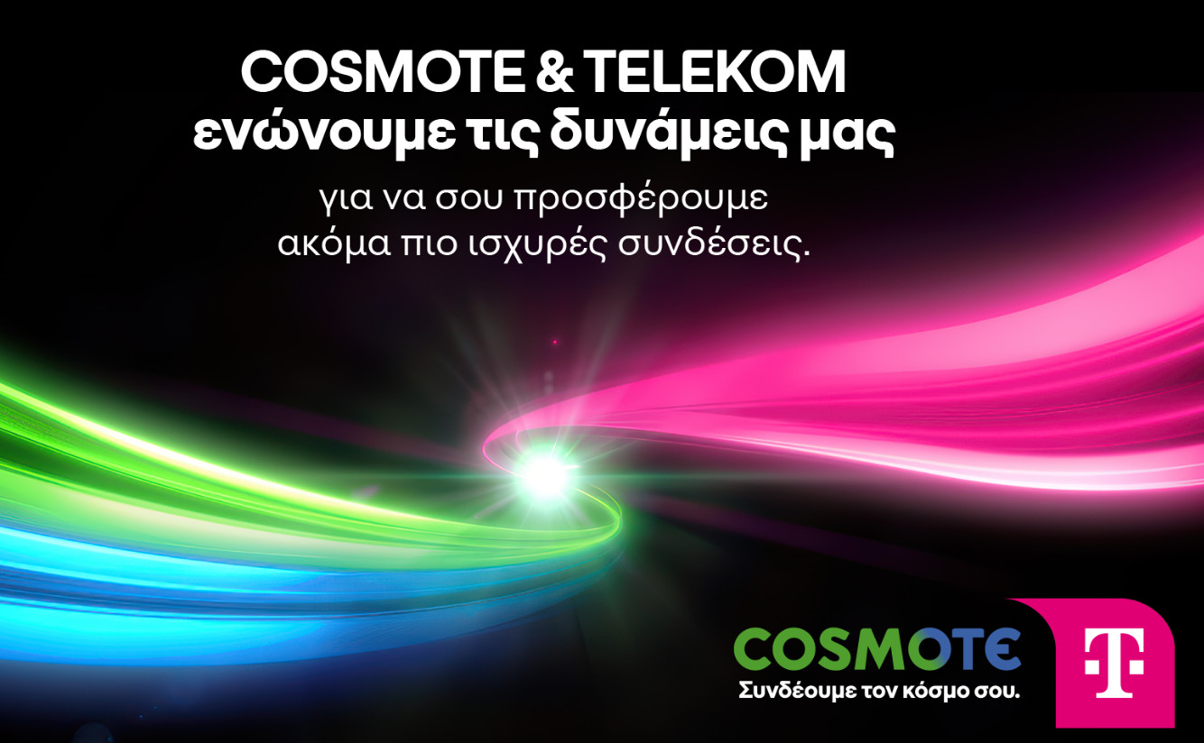Η COSMOTE, ένα από τα ισχυρότερα και πιο δημοφιλή brands στην ελληνική αγορά, ενώνει τις δυνάμεις της με την TELEKOM, την κορυφαία μάρκα στις τηλεπικοινωνίες παγκοσμίως και μία από τις κορυφαίες στον κόσμο ανεξαρτήτως κλάδου, και μαζί δημιουργούν την COSMOTE TELEKOM.
