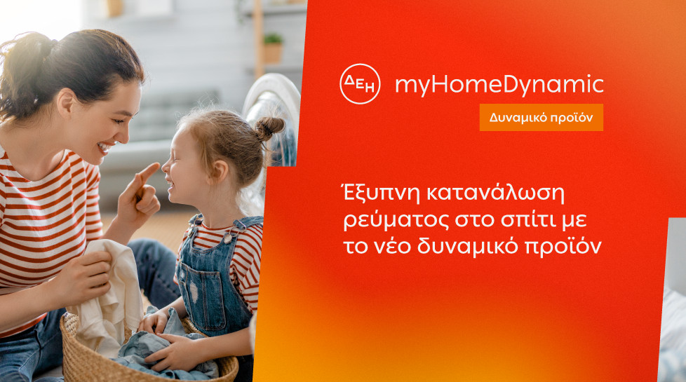 Το νέο προϊόν ρεύματος δυναμικής τιμολόγησης, σχεδιασμένο για νοικοκυριά που διαθέτουν έξυπνο μετρητή. Μετά το ΔΕΗ myBusiness Dynamic για επιχειρήσεις, η ΔΕΗ επεκτείνει τα προϊόντα δυναμικής τιμολόγησης και στους οικιακούς πελάτες δίνοντάς τους τη δυνατότητα να προσαρμόζουν την κατανάλωσή τους και να ελέγχουν αποτελεσματικότερα το ενεργειακό τους κόστος.