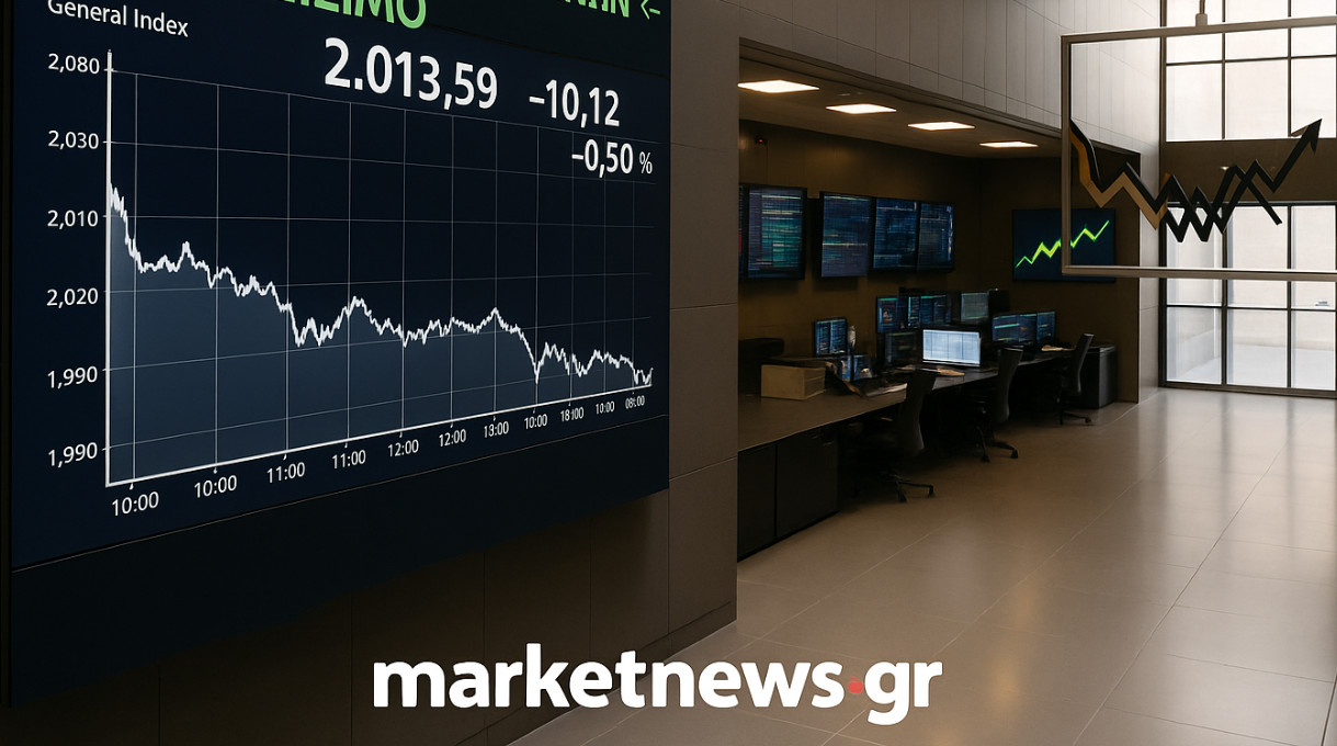 Ο Γενικός Δείκτης κινήθηκε καθ’ όλη τη διάρκεια της ημέρας με αρνητικό πρόσημο, αλλά κατάφερε να ολοκληρώσει στις 2.013,59 μονάδες, με πτώση 0,50%, πολύ κοντά στο υψηλό ημέρας (χαμηλό στις 1.993,73 μονάδες).