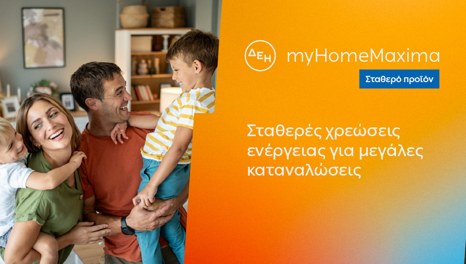Η ΔΕΗ παρουσιάζει το ΔΕΗ myHome Maxima, το νέο σταθερό 12μηνο οικιακό προϊόν ρεύματος, ειδικά σχεδιασμένο για νοικοκυριά με αυξημένες ενεργειακές ανάγκες.