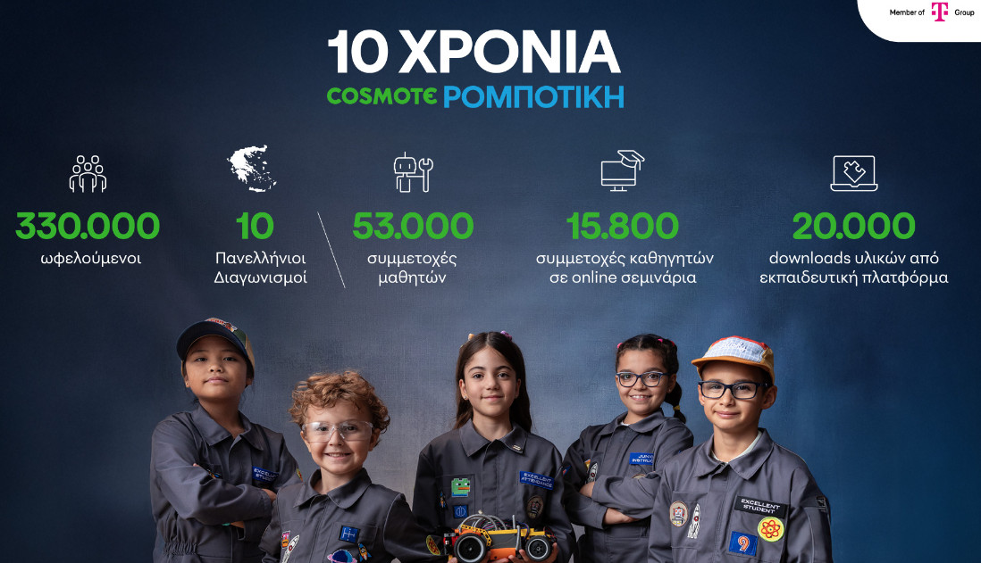 Στους 330.000 υπολογίζονται οι ωφελούμενοι από τις δράσεις που στήριξε η COSMOTE μέσα στη δεκαετία για τη διάδοση του STEM και της εκπαιδευτικής ρομποτικής καθώς και για την ανάπτυξη των ψηφιακών δεξιοτήτων των νέων.