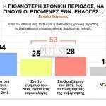 Περίπου ένας στους τρεις Έλληνες (34%) πιστεύει ότι ο Αλέξης Τσίπρας θα επιλέξει να καταφύγει σε εκλογές φέτος. Στον αντίποδα, το 53% βλέπει τις κάλπες να στήνονται το επόμενο έτος, με ελαφρώς περισσότερους (28%) να θεωρούν ότι η εκλογική μάχη θα λάβει χώρα στο δεύτερο εξάμηνο του 2019, ενώ το 25% προκρίνει ως πιθανότερη περίοδο το πρώτο μισό του χρόνου, κοντά στις ευρωεκλογές.