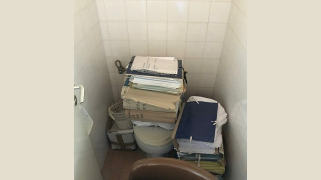 Νομίζεις δικαστή μου, ότι είσαι κατάλληλος/η για άλλη θέση του Δημοσίου; Απόδειξέ το! Απολύσου τώρα από το δικαστικό σώμα, βρες κανέναν πελάτη ως δικηγόρος, βγάλε κανένα φράγκο στην ελεύθερη αγορά, να δούμε πόσοι θα σε πληρώσουν αν αργείς 4 χρόνια να τους εξυπηρετήσεις, κι όταν το ΑΣΕΠ προκηρύξει θέσεις, δώσε εξετάσεις όπως όλοι οι ενδιαφερόμενοι, ανάμεσα στους οποίους υπάρχουν σίγουρα αρκετοί φιλόπονοι και επιμελείς που περιμένουν στην ουρά. Κι αν δεν τα καταφέρεις εκεί, υπάρχουν κι άλλες δουλειές σ΄ αυτόν τον κόσμο. Ας πούμε, να καθαρίζεις σκάλες ή τουαλέτες, για να μας πεις πώς γίνεται αυτό, όταν αυτοί οι χώροι είναι παράλληλα και αρχείο δικογραφιών, όπως στις παρακάτω φωτογραφίες από τα δικαστήρια της Ευελπίδων.