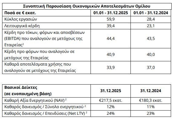 Συγκεκριμένα, ο όμιλος ανακοίνωσε σημαντική αύξηση των λειτουργικών κερδών, τα οποία διαμορφώθηκαν σε €39,4 εκατ. τη χρήση 2025 έναντι €23,1 εκατ. τη χρήση 2024, συνέχιση της αναπτυξιακής πορείας με αύξηση της Καθαρής Αξίας Ενεργητικού (NAV) του Ομίλου, η οποία ανήλθε σε €217,5 εκατ. την 31.12.2025 (31.12.2024: €180,3 εκατ.).