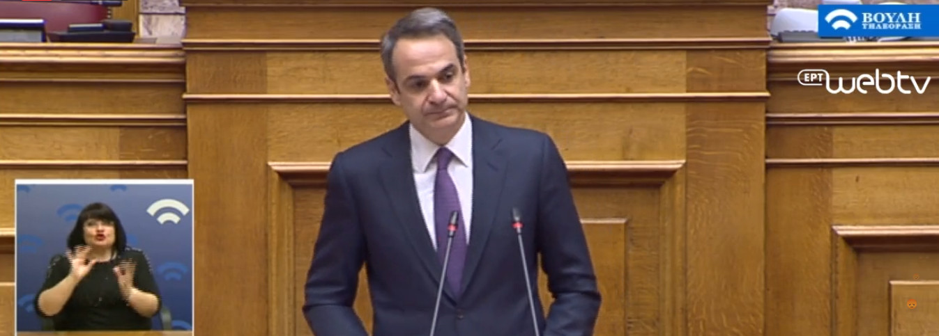 Ο πρωθυπουργός Κυριάκος Μητσοτάκης από το βήμα της Βουλής ανακοινώνει για τα νέα μέτρα ενάντια στον κορωνοϊό.