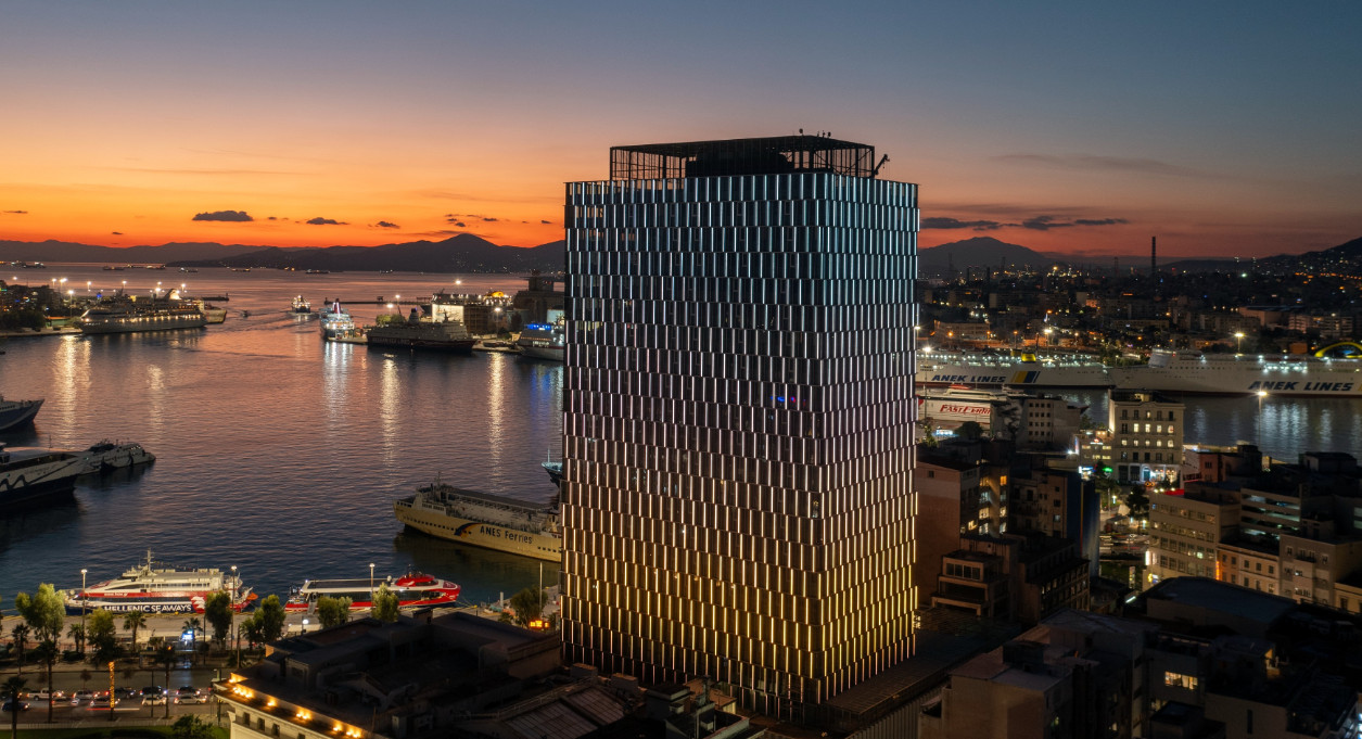 Ο Πύργος Πειραιά, το εμβληματικό τοπόσημο που μετά την αναγέννησή του έπειτα από σχεδόν μισό αιώνα αδράνειας και εγκατάλειψης, σηματοδοτεί τη νέα εποχή της πόλης, αποσπά κορυφαίες διακρίσεις σε εθνικό και διεθνές επίπεδο για τον αρχιτεκτονικό του σχεδιασμό και φωτισμό.