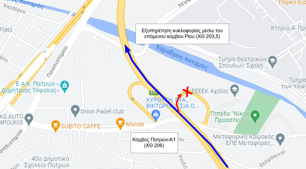 Κατά τη διάρκεια των εργασιών, η έξοδος του Ανισόπεδου Κόμβου Κ1 της Περιμετρικής Πατρών προς την οδό Διοδώρου στο ρεύμα προς Αθήνα θα παραμείνει κλειστή και η κυκλοφορία των οχημάτων θα πραγματοποιείται από τον Α/Κ Ρίου. Επί της οδού Διοδώρου η κυκλοφορία θα εξυπηρετείται από την παράπλευρη οδό με την βοήθεια σηματωρών, προκειμένου να γίνεται διευθέτηση της κυκλοφορίας με ασφάλεια.