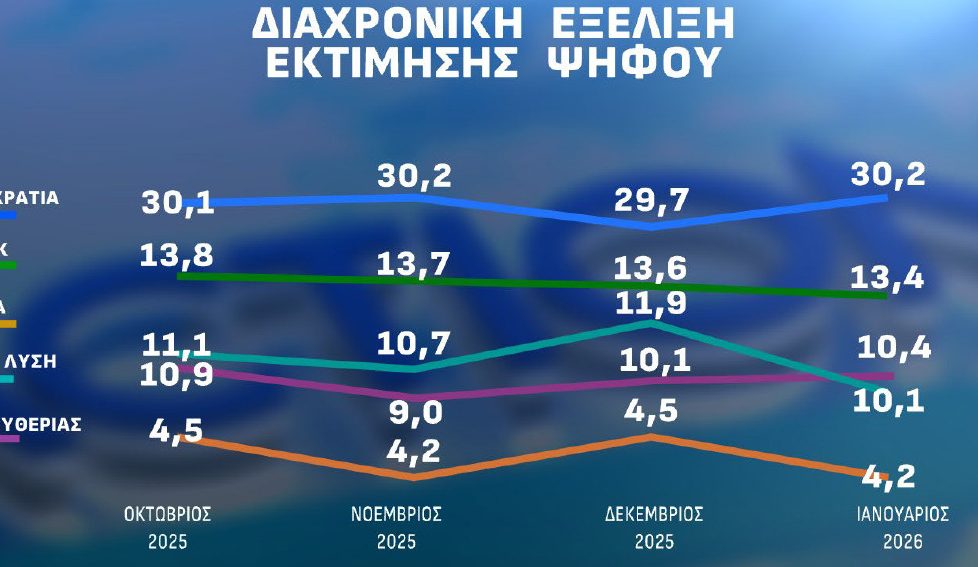 Opinion Poll: Στο 30,2% στην εκτίμηση ψήφου η ΝΔ – Μακράν πρώτος στην καταλληλότητα ο Κ. Μητσοτάκης με 29%
