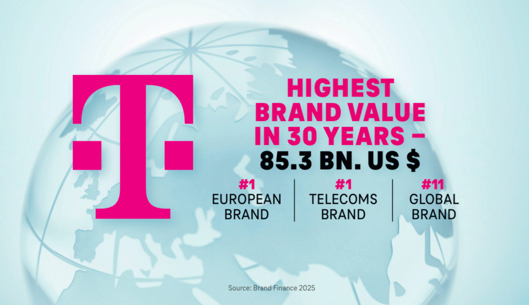 Ειδικότερα, η Telekom βρίσκεται στην ενδέκατη θέση στον κόσμο, αποτελώντας τη μοναδική ευρωπαϊκή εταιρεία στο top 20 της παγκόσμιας κατάταξης, που περιλαμβάνει μεταξύ άλλων, τις Apple, Microsoft, Google και Amazon, ενώ παραμένει το κορυφαίο brand στην Ευρώπη. Όσον αφορά στον κλάδο των τηλεπικοινωνιών, η Telekom παραμένει το πολυτιμότερο brand στον κόσμο, ξεπερνώντας τις Verizon και AT&T.