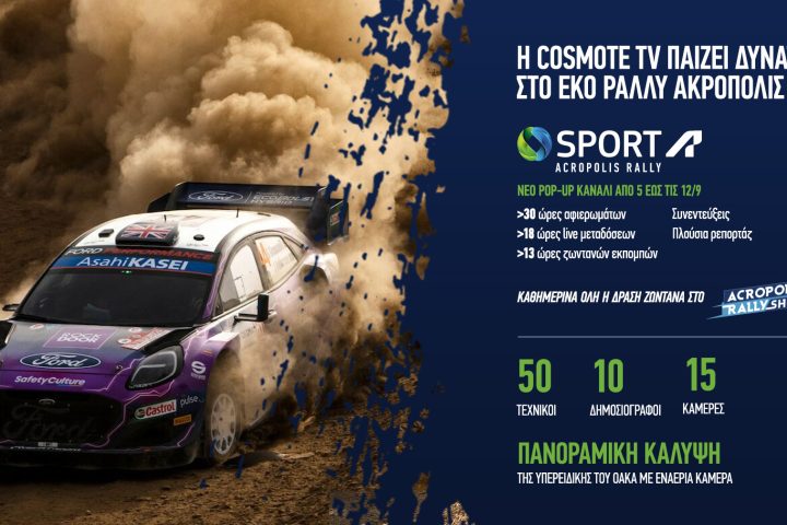 Ελλάδα·Επιχειρήσεις 1 Σεπτεμβρίου 2022 Το pop-up κανάλι για το «Ράλλυ των Θεών» ξεκινάει στην Cosmote TV Η ώρα του EKO Ράλλυ Ακρόπολις 2022 πλησιάζει κι από τις 5 έως και τις 12 Σεπτεμβρίου το pop-up κανάλι COSMOTE SPORT ACROPOLIS RALLY θα γίνει για μια ακόμη φορά ο απόλυτος