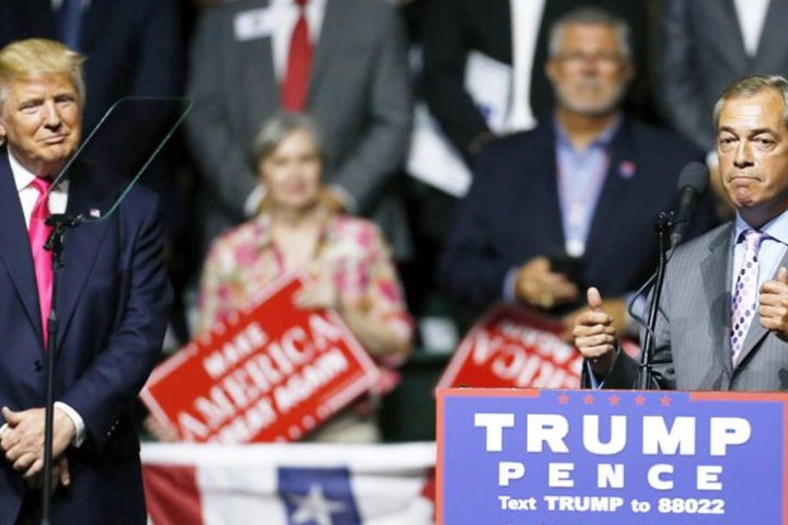 Ηνωμένες Πολιτείες·Πολιτική 26 Αυγούστου 2016 Ο Farage στο πλευρό του Trump Στο πλευρό του Ντόναλντ Τραμπ εμφανίσθηκε την Τετάρτη το βράδυ ο ηγέτης του κινήματος υπέρ της εξόδου της Βρετανίας από την Ευρωπαϊκή Ενωση Νάιτζελ Φάρατζ