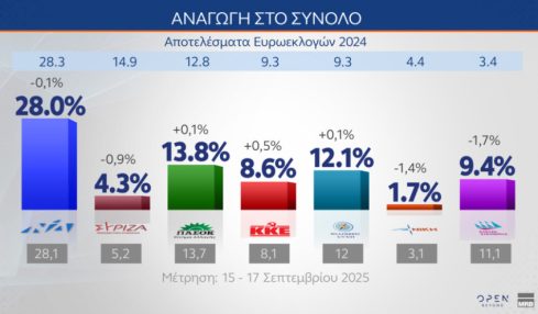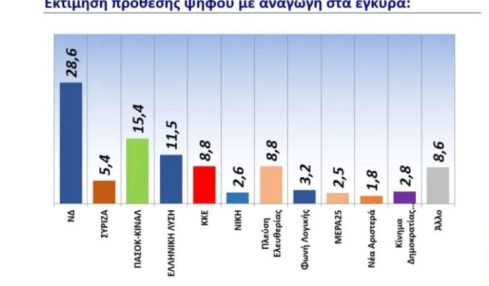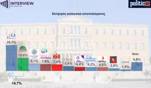 RealPolls: Στο 30,6% η ΝΔ – Στο 5,6% ο ΣΥΡΙΖΑ – πτώση 3 μονάδων για την Πλεύση