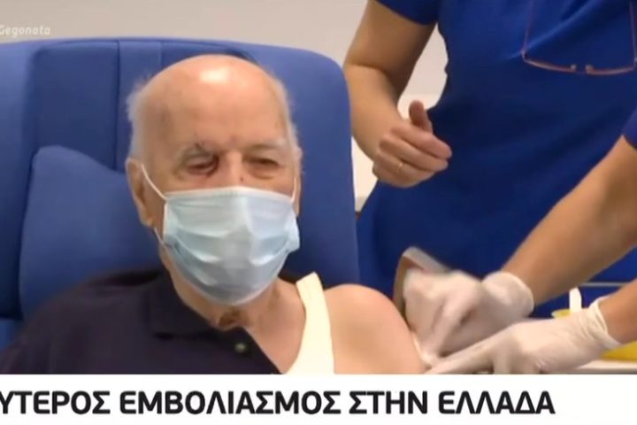 Στο νοσοκομείο Ευαγγελισμός εμβολιάστηκε ο πρώτος ηλικιωμένος, που είναι μαζί με την μάχιμη νοσηλεύτρια οι δύο πρώτοι στη λίστα της χορήγησης του εμβολίου