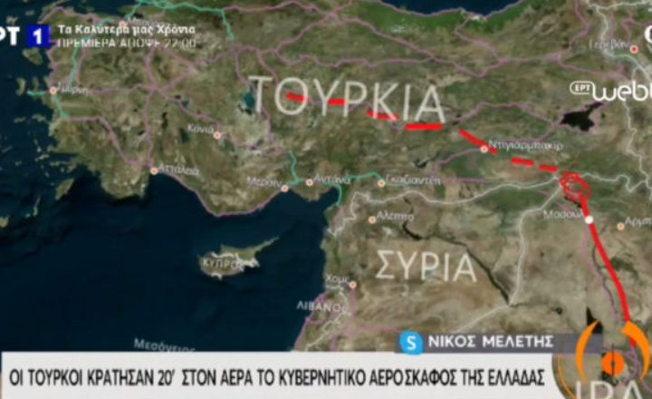 Επικαιρότητα·Κόσμος 15 Οκτωβρίου 2020 Η Τουρκία κράτησε 20΄ στον αέρα το κυβερνητικό αεροσκάφος της Ελλάδας Είκοσι λεπτά κράτησαν οι Τούρκοι στον αέρα το κυβερνητικό αεροσκάφος της Ελλάδας πάνω από τα σύνορα Τουρκίας – Ιράκ το βράδυ της Τετάρτης.