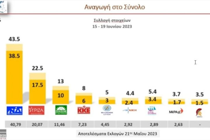 MRB: Έως 43,5% η ΝΔ – Από 17,5% ο ΣΥΡΙΖΑ