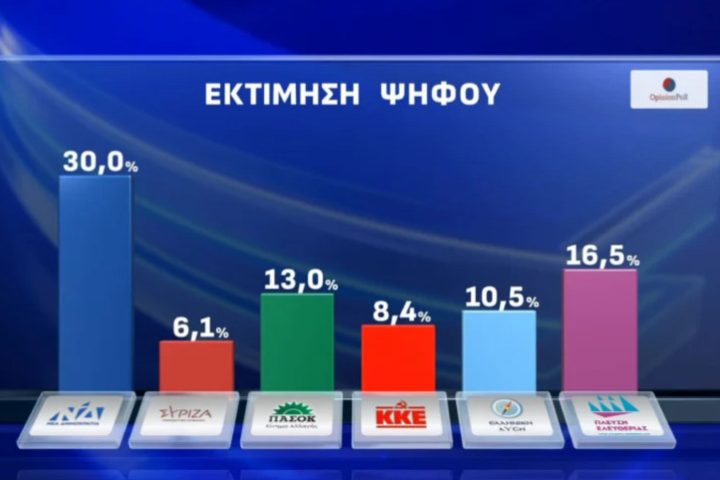 Opinion Poll: Στο 30% η ΝΔ, στο 16,5% η Πλεύση, στο 13% το ΠΑΣΟΚ – Συνεχίζεται η απόλυτη κυριαρχία Μητσοτάκη στην καταλληλότητα για την πρωθυπουργία
