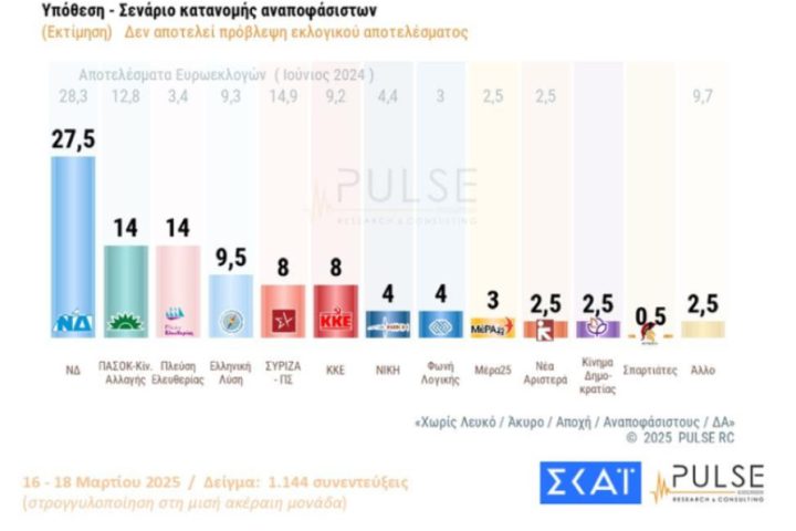 Pulse: Πρωτιά της ΝΔ με 27,5% – Έφτασε το ΚΚΕ ο ΣΥΡΙΖΑ!