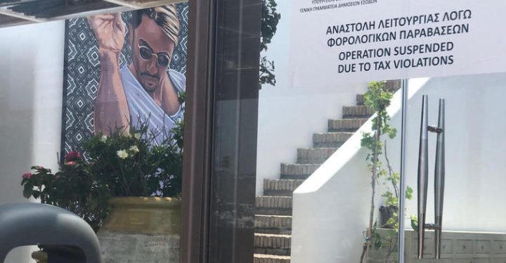 Ελλάδα·Οικονομία 20/06 Λουκέτο από την ΑΑΔΕ στο εστιατόριο του Salt Bae στη Μύκονο – για 34 αποδείξεις αξίας €25.800 Λουκέτο για 48 ώρες έβαλαν χθες οι ελεγκτές της Ανεξάρτητης Αρχής Δημοσίων Εσόδων στο εστιατόριο, Nusret, του διάσημου Τούρκου chef, Salt Bae, στη Μύκονο