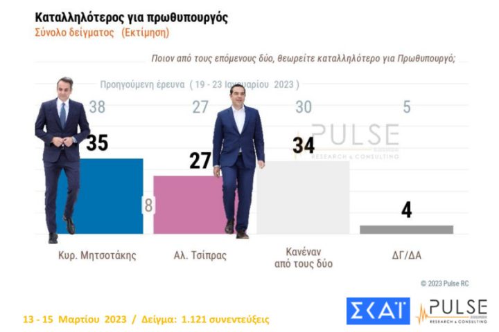 Pulse: Στις 4 μονάδες η διαφορά ΝΔ- ΣΥΡΙΖΑ –