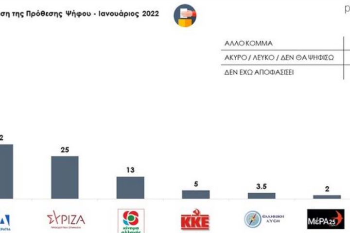 Η Ν.Δ ανεβαίνει κατά 0.5% σε σχέση με την έρευνα του Ιανουαρίου, καλύπτοντας απώλειες της περιόδου των αγροτικών κινητοποιήσεων, δείχνοντας σημαντική αντοχή  και βρίσκεται στην εκτίμηση ψήφου στο 30.2% έχοντας διαφορά από