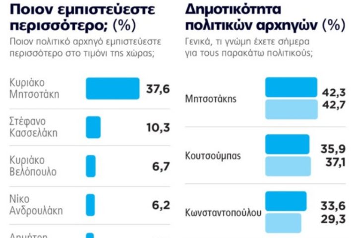 Opinion Poll: Στο 30,2% στην εκτίμηση ψήφου η ΝΔ – Μακράν πρώτος στην καταλληλότητα ο Κ. Μητσοτάκης με 29%