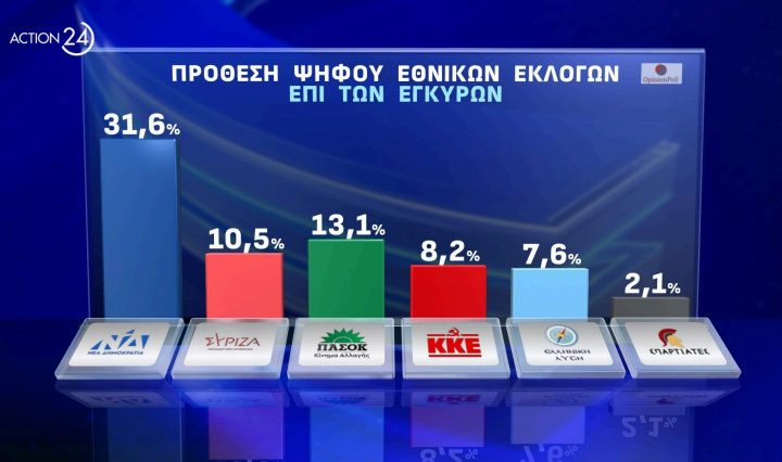 Opinion: Στις 19,7 μονάδες η διαφορά ΝΔ με ΠΑΣΟΚ για τις ευρωεκλογές, νέα πτώση για ΣΥΡΙΖΑ