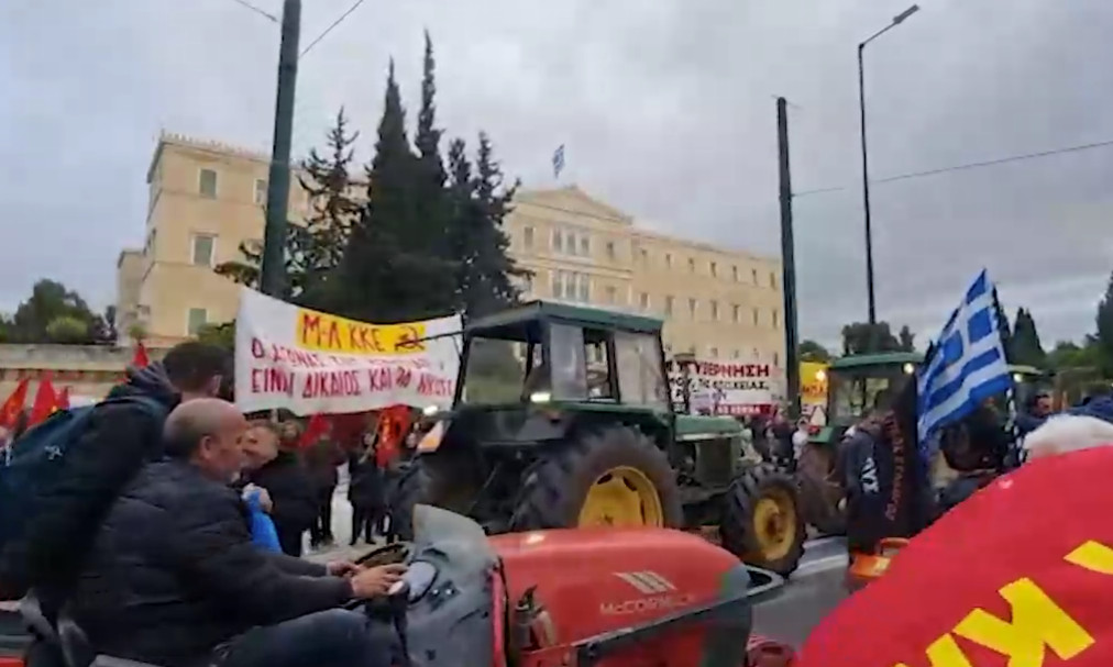 Σε εξέλιξη έξω από τη Βουλή είναι το συλλαλητήριο της Πανελλαδικής Επιτροπής των Μπλόκων.
