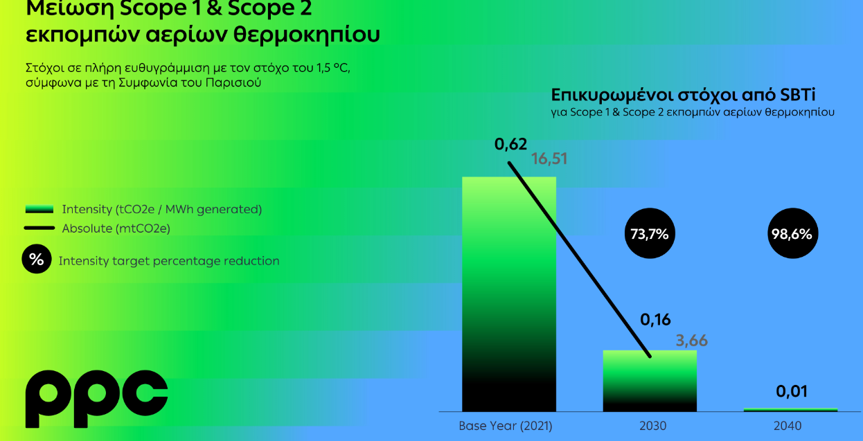 Οι βραχυπρόθεσμοι στόχοι του Ομίλου ΔΕΗ, μέχρι το 2030, με έτος βάσης το 2021, όπως εγκρίθηκαν από το SBTi, είναι: