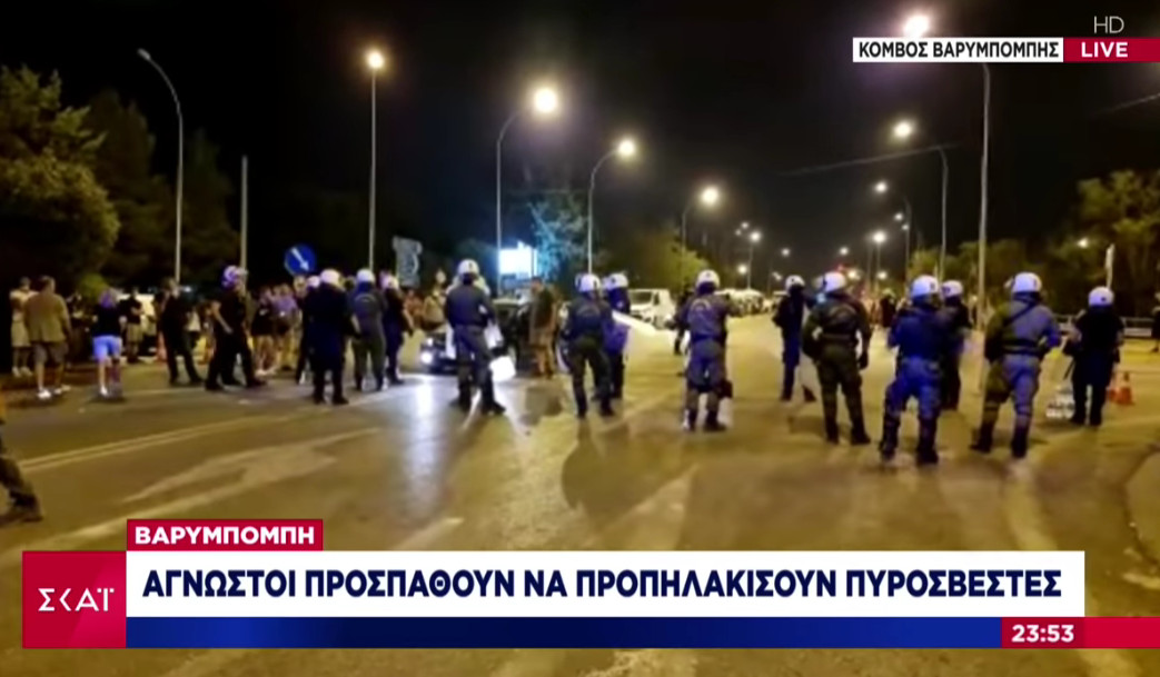 Δυνάμεις των ΜΑΤ έσπευσαν στον κόμβο της Βαρυμπόμπης καθώς ομάδα αγνώστων ατόμων επιτέθηκε σε πυροσβέστες. Το περιστατικό σημειώθηκε λίγο μετά τις 23:30, όπως μετέδωσε ο ΣΚΑΙ.
